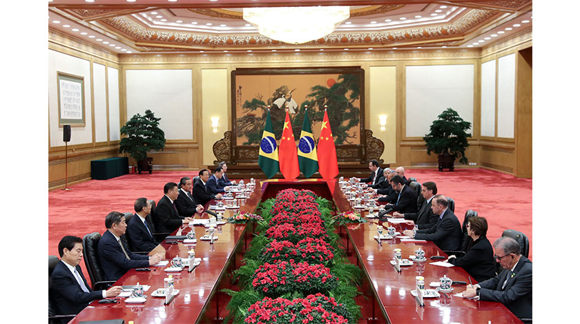 10月25日,中國國家主席習近平在北京人民大會堂同巴西總統博索納羅會談。(中新社圖片/杜洋 攝)
