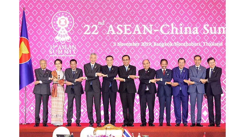 當地時間11月3日上午,中國國務院總理李克強在泰國曼谷出席第22次中國-東盟(10+1)領導人會議。(中新社圖片/劉震 攝)