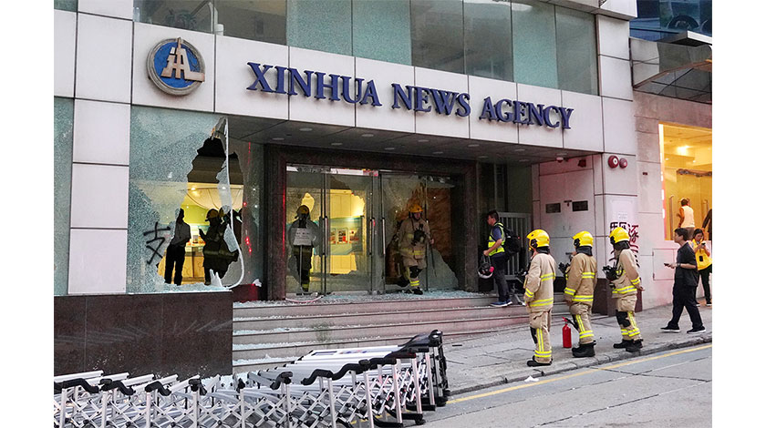 【香港中通社11月3日電】11月2日下午,一群暴徒打砸位於香港的新華社亞太總分社辦公大樓,破壞安防設施。中國官方媒體11月3日發表評論表示強烈譴責。
