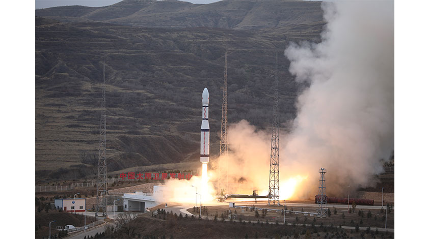 北京時間11月13日14時35分,中國在太原衛星發射中心用長征六號運載火箭實施一箭五星發射,將5顆寧夏一號衛星(又稱鍾子號衛星)準確送入預定軌道,任務獲得圓滿成功。 (中新社圖片/鄭逃逃 攝)