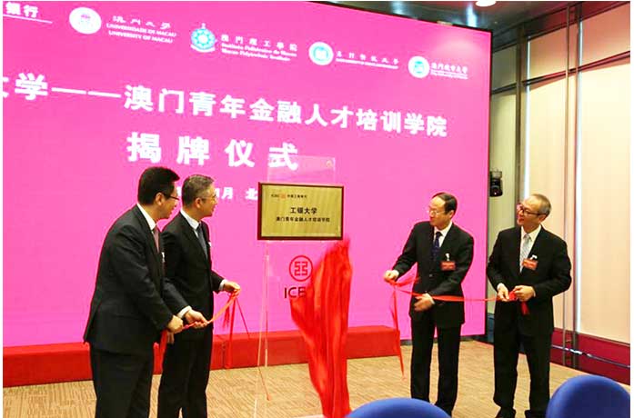 【特訊】2019年11月14日,中國工商銀行“工銀大學—澳門青年金融人才培訓學院”在北京正式揭牌。工商銀行行長谷澍、國務院港澳事務辦公室交流司司長吳煒、澳門特別行政區高等教育局局長蘇朝暉、中央人民政府駐澳門聯絡辦公室祕書長王新東、澳門金融管理局顧問劉佳華共同見證工銀澳門與澳門大學、澳門理工學院、澳門科技大學和澳門城市大學等四所澳門高校簽署戰略合作協議,國務院港澳事務辦公室、教育部、澳門特別行政區高等教育局、中央人民政府駐澳門特別行政區聯絡辦公室、澳門金融管理局等機構有關負責人參加揭牌儀式。