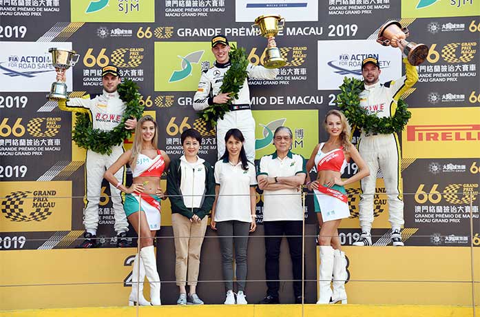 【特訊】由澳門博彩股份有限公司(「澳博」)冠名贊助的「澳博澳門GT盃-國際汽聯GT世界盃」11月17日舉行決賽,最後由車手馬些路勇奪冠軍,亞軍及季軍分別為雲科爾及班博。賽後,澳博董事局主席何超鳳、常務董事兼行政總監梁安琪及董事霍震霆分別向冠、亞、季軍車手頒發獎盃。