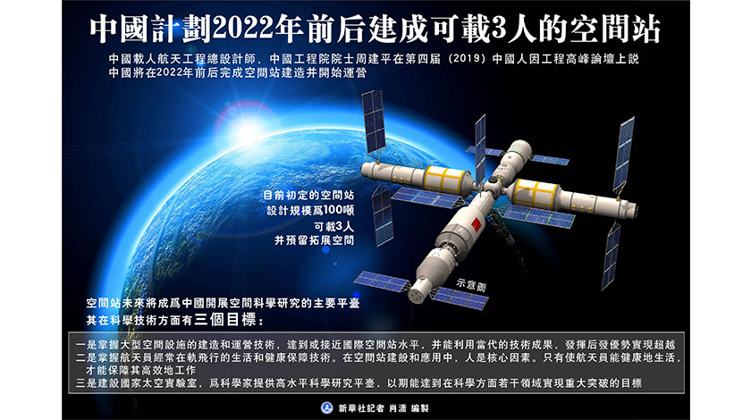 圖表:中國計劃2022年前後建成可載3人的空間站(新華社記者 肖瀟 編制)