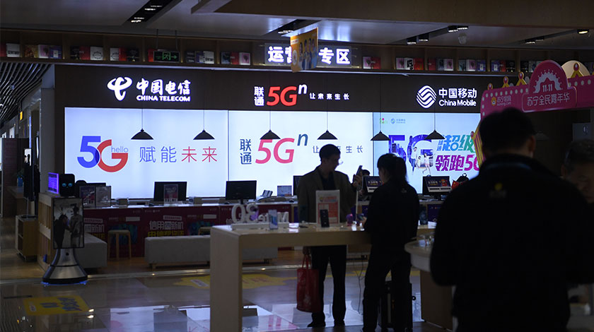 11月21日,首屆世界5G大會在北京召開。工信部部長苗圩在開幕式上說,中國正式啟動5G商用服務,現已開通5G基站11.3萬個,5G套餐簽約用戶87萬,發展勢頭良好。資料圖為10月31日重慶民眾正在電子商城選購5G手機。(中新社圖片/陳超 攝)