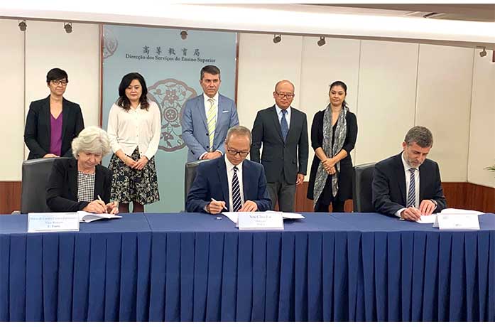 【特訊】高等教育局、葡國波爾圖大學、東方葡萄牙學會於昨日共同簽署《關於澳門學生赴葡國波爾圖大學升學的合作協議書》,為本澳居民創設更便捷的升學途徑,並藉此深化在高等教育領域的交流與合作,強化中葡雙語人才的培育工作。