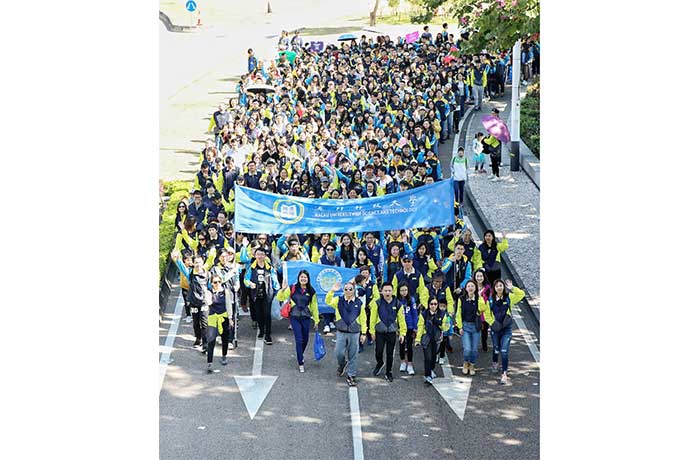 本屆「公益金百萬行」正值澳門回歸20周年以及澳門科技大學建校20周年,澳科大隊伍在歡樂滿載的氣氛中完成近兩小時的慈善步行活動。在這喜迎回歸、同賀校慶之際,澳科大人以行動支持社會公益盛事、與愛同行傳承特區精神、共襄善舉展現澳科大活力。