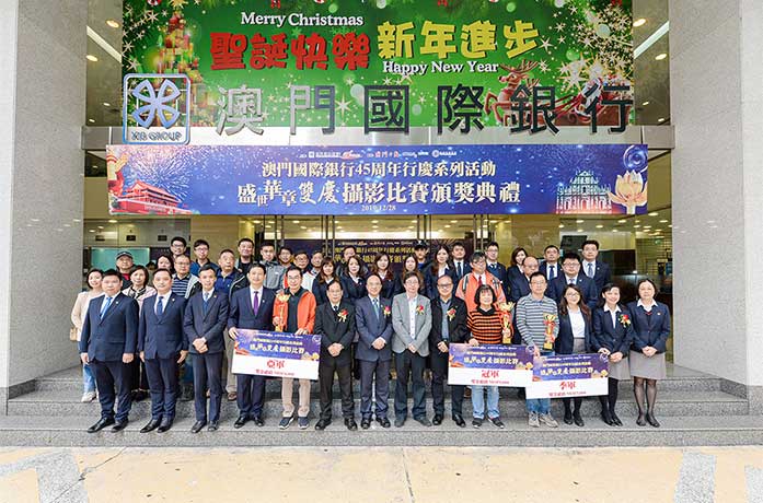 【特訊】澳門國際銀行45周年行慶系列活動之盛世華章雙慶攝影比賽頒獎典禮於12月28日上午假澳門國際銀行總行大堂舉行。該次比賽由澳門國際銀行主辦,澳門日報、澳門電訊有限公司、澳門攝影學會作為協辦單位。出席代表有澳門國際銀行吳斯亮副總經理及一眾主管、澳門日報副總編輯司徒偉業、澳門攝影學會會員大會主席馬志信、澳門攝影學會會員大會副主席何國威。