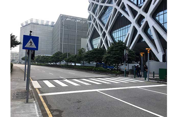 【特訊】交通事務局為提升行人過路安全,經視察現場環境,把位於霍英東博士大馬路近摩珀斯門口的一組斑馬線改為燈控過路設施,有關交通燈由1月8日(周三)起投入運作。