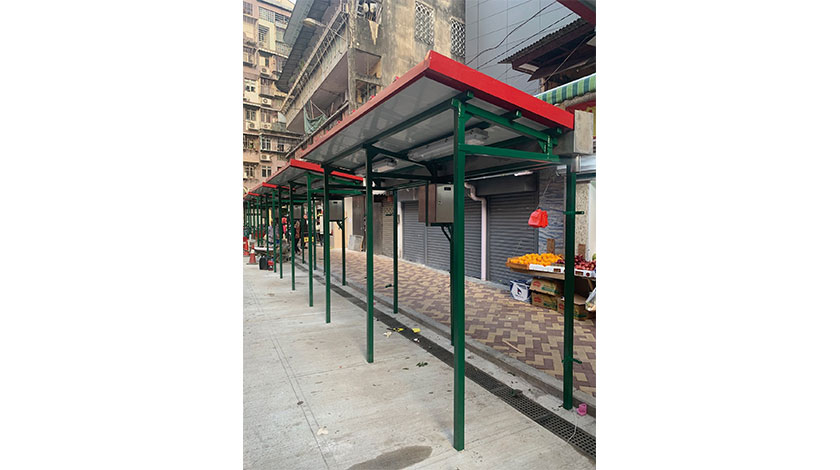 紅街市外圍小販區重整工程,包括重新規劃小販檔位的分佈,統一小販檔位尺寸、微調檔位位置、每組檔位之間保留一定空間作為行人通道,並統一為小販區提供遮陽棚和伸縮活動雨篷等,以完善小販區設施,提升該區整體的社區及營商環境。