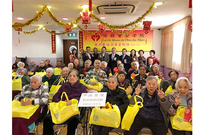 同善堂值理會每年農曆新年前夕,都會組織負責人及員工探訪長者院舍及殘障人士服務機構,今年該堂探訪15間長者院舍(包括:聖方濟各安老院、明輝護養院、母親會安老院、母親會護老院、濠江逸麗護老院、伯大尼安老院、清安醫所、聖瑪利亞安老院、仁慈堂安老院、頤安護老院(白鴿巢)、瑪大肋納安老院、盈康護老院、工聯九澳護養院、澳門護老院和仁愛安老院)及17間殘障人士服務機構(包括:啟能中心、澳門盲人重建中心、啟智學校、曉光中心、旭日中心、康樂綜合服務中心、啟康中心、主教山兒童中心、聾人服務中心、啟聰中心、澳門扶康會康盈中心、聖路濟亞中心、聖瑪嘉烈中心、聖類斯公撒格之家、中國澳門殘疾人奧委會暨傷殘人士文娛暨體育總會、曙光中心和智耆之友協會)。受惠院舍和殘障服務機構均感謝同善堂的關懷探訪和支持,大家互相預祝春節快樂,鼠年吉祥,活動氣氛歡愉,場面溫馨熱鬧。