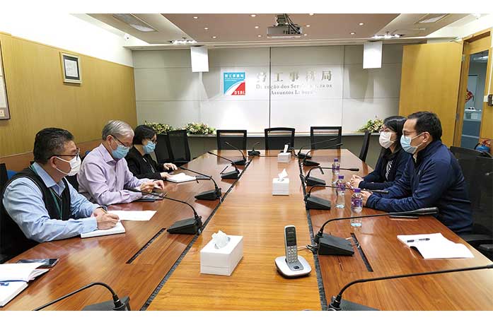 出席會面的勞工局局長黃志雄和副局長吳惠嫻、陳元童表示,十分關注多個行業從業員的困難,會持續為有意願轉職的從業員提供就業登記和職業配對,政府以工代賬的計劃考慮了不同行業中受疫情影響人士的需要,配合公共工程的加大投入,建築相關的技能訓練是其中一個重點;亦會開辦零售、廚師、餐飲服務等相關培訓。有需要的人士除了可登陸勞工事務局官方網站查詢或登記外,局方亦提供了專門的網上登記渠道,讓有關人士透過掃描二維碼登記求職資料,以便集中開展就業轉介的工作。
