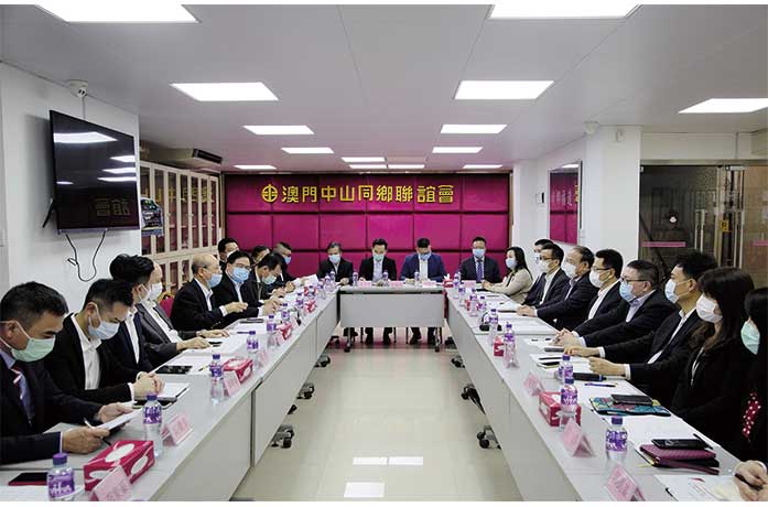 【特訊】為響應特區政府同心抗疫的號召,助本地中小企業盡快恢復生產,穩定澳門經濟,3月2日中國工商銀行(澳門)股份有限公司(下稱“工銀澳門”)董事長姜壹盛、行政總裁徐克恩、副行政總裁陳錦聯、鄧萬鴻、黃獻軍等一行到訪澳門中山同鄉聯誼會,得到會長盧偉碩、常務副會長歐潤榮、黃敏濤、理事長張亮、副會長余幹成、盧世豪、何武泉、區榮享、歐家輝、袁應龍及李家豪等接待,雙方交流商討通過銀行與該會合作,協助本地中小企解決目前面臨的經營困難。