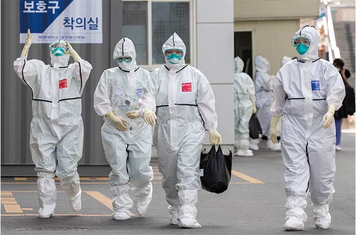 這是3月15日在韓國大邱啟明大學東山醫院拍攝的醫護人員。