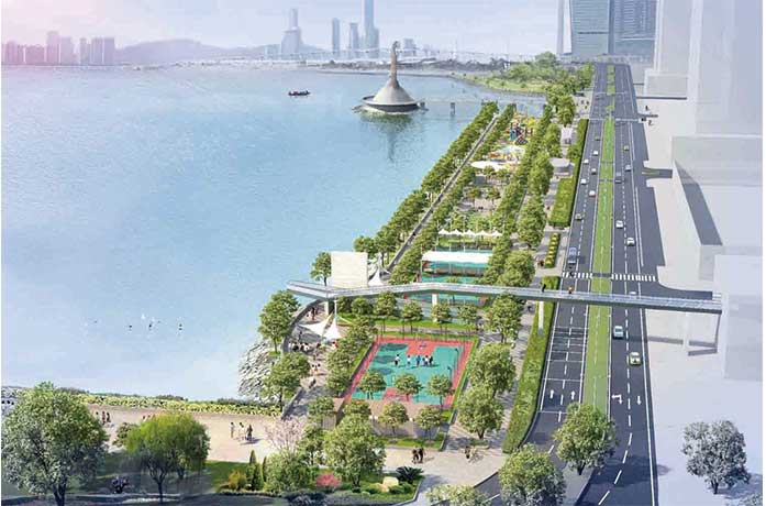 市政署將在今年四月起,分階段建設串連科學館、觀音像,伸延至媽閣的澳門半島南岸海濱綠廊,為全澳市民提供大型多元海濱休憩空間,工程並落實特區政府以工代賑政策,扶助本地中小企業,優先保障本地工人就業,創造二百多個就業職位。澳門半島南岸海濱綠廊第一期工程觀音像海濱休憩區總面積約一點五萬平方米,由科學館至觀音像的一段海濱沿岸,將設有兒童遊樂區、步行徑、茶座、多功能球場、健身康樂區、門球場、滾軸溜冰場等休閒康樂空間,並預留空間接駁第二期休憩區的單車徑,預計今年年底前完成建設,預算約為六千萬元。觀音像海濱休憩區設有長約四百米海濱步行徑,會保留現有大樹,調整目前綠化帶佈置,增植樹木及綠化植物。兒童遊樂區總面積約二千七百平方米,將劃分不同年齡區域,引入共融式遊樂設施,建成後將成為澳門半島最完善的親子休閒區;茶座區約三百八十平方米,設小賣亭、引入親子廁所及哺乳室,以友善設計讓不同年齡層使用者共享海濱休憩區。考慮到市民對康體設施的需求,觀音像海濱休憩區內設七百平方米多功能廣場,將設置日常較受市民歡迎的戶外活動設施;另七百平方米的健身康樂區則提供不同強度的健身設施,還有按國際標準設計的門球場、滾軸溜冰場,可作籃球場或足球場的多功能球場,並會重新修葺兩個小型建築物,翻新後將加入文創、藝術、商業、咖啡輕食等元素,配合海濱綠廊整體發展。市政署同步將於今年内開展觀音像至媽閣的第二期澳門半島南岸海濱綠廊規劃設計,再進行公開諮詢,期望整項工程於今屆特區政府任期內完成。
