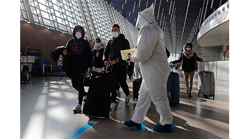 3月26日,中國外交部、國家移民管理局發佈公告稱,鑒於新冠肺炎疫情在全球範圍快速蔓延,中方決定自2020年3月28日0時起,暫時停止外國人持目前有效來華簽證和居留許可入境。暫停外國人持APEC商務旅行卡入境。暫停口岸簽證、24/72/144小時過境免簽、海南入境免簽、上海郵輪免簽、港澳地區外國人組團入境廣東144小時免簽、東盟旅遊團入境廣西免簽等政策。公告稱,持外交、公務、禮遇、C字簽證入境不受影響。外國人如來華從事必要的經貿、科技等活動,以及出於緊急人道主義需要,可向中國駐外使領館申辦簽證。外國人持公告後簽發的簽證入境不受影響。公告稱,這是中方為應對當前疫情,參考多國做法,不得已採取的臨時性措施。中方願與各方保持密切溝通,做好當前形勢下中外人員往來工作。中方將根據疫情形勢調整上述措施並另行公告。圖為3月18日,外籍入境人員在上海浦東機場T1航站樓進行轉機。中新社記者 殷立勤 攝