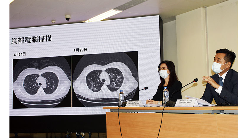 山頂醫院醫務主任羅奕龍介紹,該重症患者昨(廿九日)出現呼吸困難,血液氧氣含量降低,複查胸部CT顯示雙肺肺炎明顯惡化,符合國家衛健委之重型標準,是本澳首位重症患者。