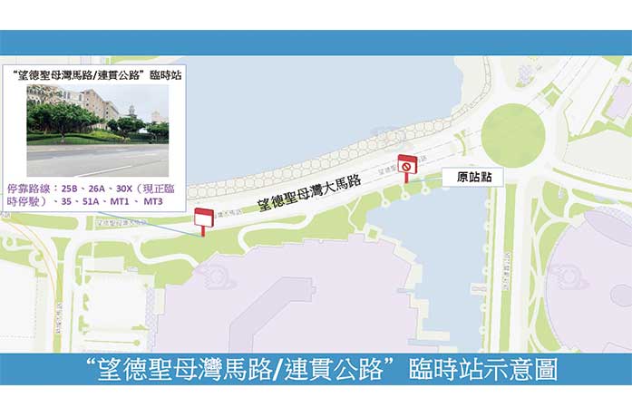 【特訊】為配合路氹城用電需求,澳門電力股份有限公司(澳電)於4月14日(周二)至7月19日(周日)在路氹連貫公路圓形地及望德聖母灣大馬路進行電纜鋪設工程。有關工程已取得市政署核准並經交通事務局協調,屆時將實施臨時交通安排,路氹連貫公路圓形地及近路氹連貫公路圓形地一段望德聖母灣大馬路實施有限度通車。澳電及交通事務局呼籲公眾留意。另外,由4月14日(周二)首班車起,“望德聖母灣馬路/連貫公路”巴士站往輕軌排角站方向將臨時遷移約260米,供25B、26A、30X(現正臨時停駛)、35、51A、MT1及MT3路線巴士停靠,直至工程結束。