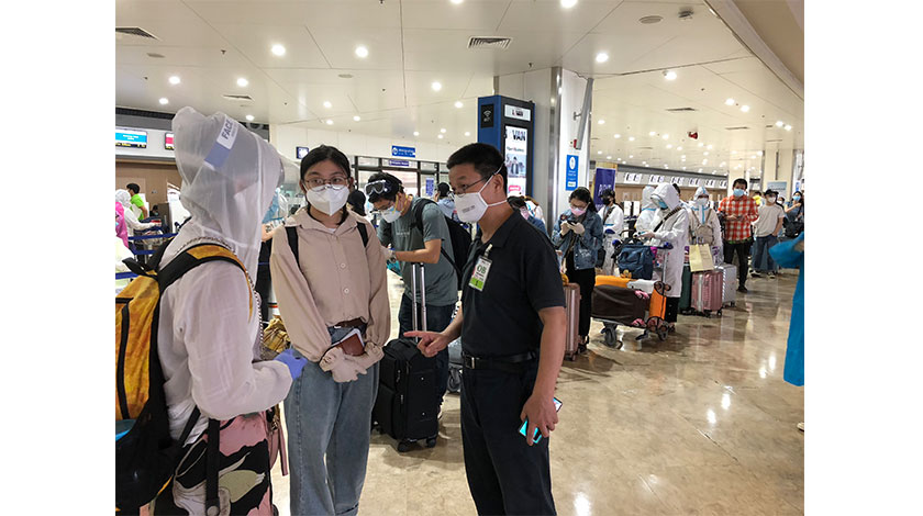 5月7日下午2:50,南方航空CZ3092航班從馬尼拉國際機場起飛,5:04安全降落廣州白雲國際機場,這是馬尼拉『封城』54天后,首個直飛中國航班。航班上載有264名滯留菲律賓的同胞。圖為中國駐菲大使館文化參讚田善亭前往馬尼拉國際機場送行。(中新社發 何樂 攝)