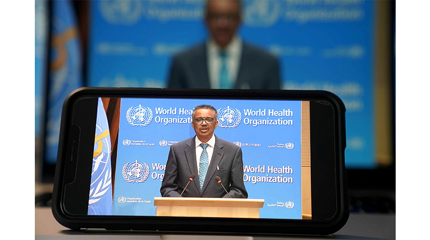 5月18日,第七十三屆世界衛生大會以視頻會議形式舉行開幕式。圖為在德國柏林拍攝的世衛組織總干事譚德塞致辭畫面。(中新社記者 彭大偉 攝)