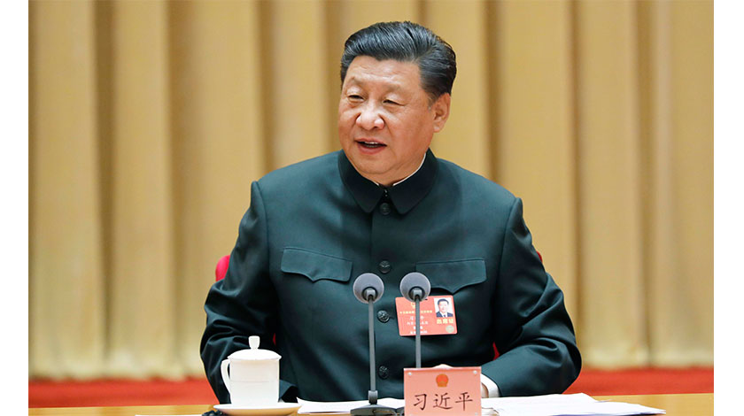 5月26日下午,中共中央總書記、國家主席、中央軍委主席習近平出席十三屆全國人大三次會議解放軍和武警部隊代表團全體會議併發表重要講話。(新華社記者 李剛 攝)