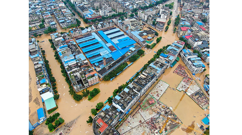 6月8日,廣西柳州市魚峰區雒容鎮低窪地段被洪水淹沒,一片“澤國”。(中新社記者 王以照 攝)