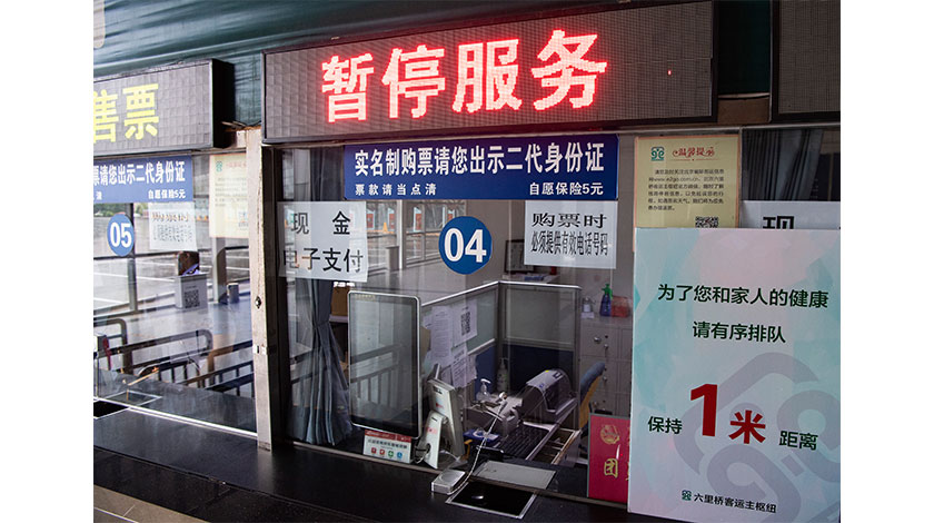 6月18日,北京六裡橋長途客運站部分售票視窗暫停服務。6月18日下午,北京召開疫情防控第125場例行新聞發佈會,北京市交通委員會副主任、新聞發言人容軍介紹,自6月19日起,北京市所有省際客運站運營的省際客運班線全部停運,將為已購車票的旅客辦理全額退票手續。(中新社記者 侯宇 攝)
