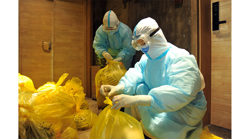 6月25日,農曆五月初五,端午節。在這個中國傳統節日裡,一個北方小城正在度過一個『特殊』的節日。河北雄安新區安新縣,因地域和歷史傳統因素,有做水產生意的傳統,僅在北京新發地經營水產生意的人員就達2100餘人。自6月14日以來,安新縣相繼出現多例新冠肺炎確診病例。6月18日,安新縣全城實施臨時交通管制,這座北方小城開啟了『自我隔離』模式。圖為6月23日,安新縣集中隔離醫學觀察點內,劉靜(左)與同事正在工作。(中新社記者 韓冰 攝)