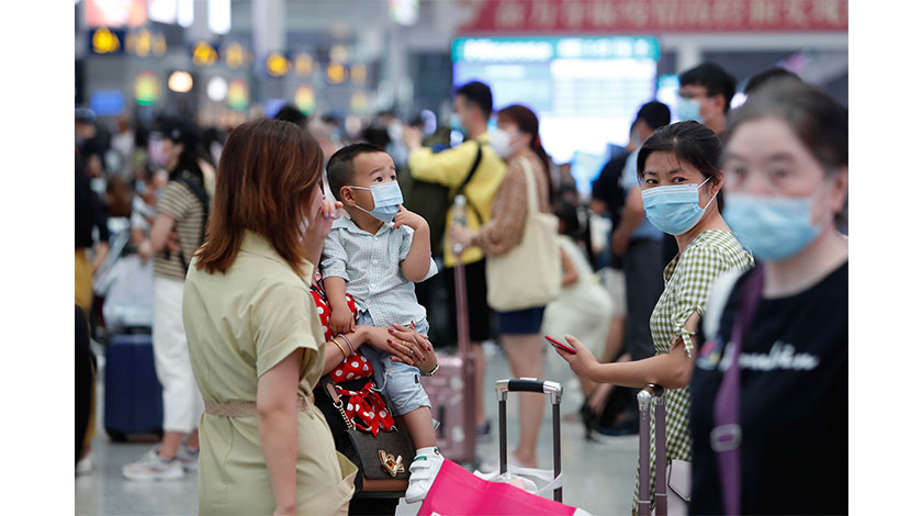 6月25日,旅客帶著孩子在鐵路上海虹橋站候車大廳內等待驗票上車。當日,記者從中國鐵路上海局集團有限公司獲悉,端午節當天,長三角鐵路預計發送旅客175萬人次,有望創下今年五一小長假後單日客流最高峰。(中新社記者 殷立勤 攝)