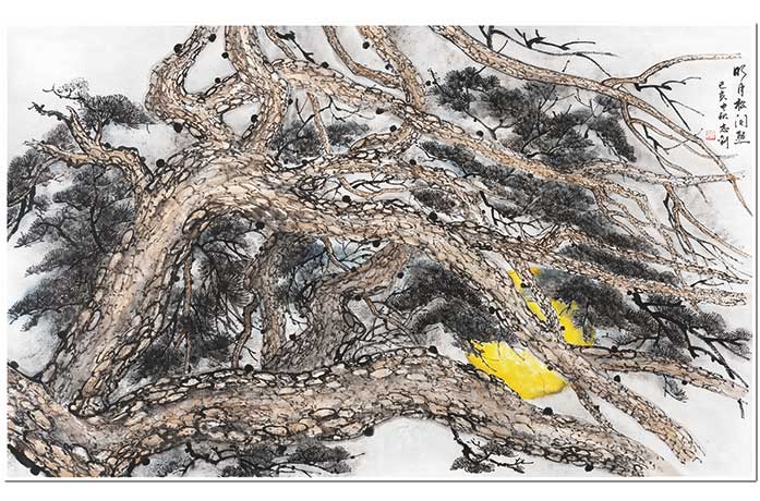 是次展出的作品主要環繞寫意水墨山水,由作者1992年廣州美術學院畢業創作的三連屏“鳥戀故林”至今約80幅精選作品。從該批作品中可以看到,作者不斷在傳統基礎上嘗試多樣性創作,努力探討水墨的變化並融入中西技法。為表現水墨的墨分五色變化,作者經常在畫中不著任何色彩,以純筆墨顯出樹石的蒼勁。