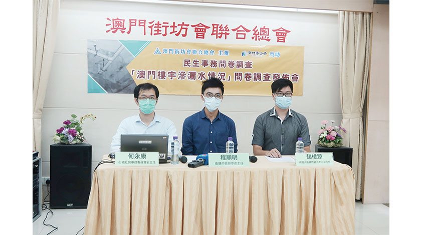 街總於今年六月中上旬至中旬,展開了「澳門樓宇滲漏水情況問卷調查」,了解本澳居民遭遇樓宇滲漏水的比率、居民在解決滲漏水過程中遇到的困難和了解居民對政府處理樓宇滲漏水的意見。