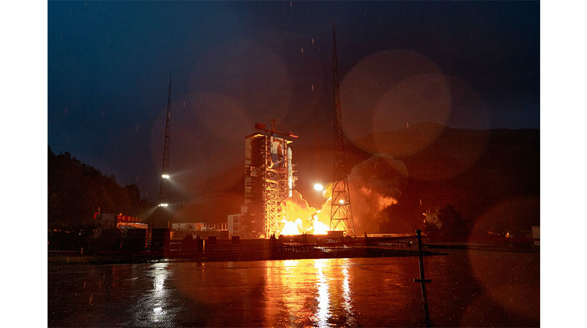 北京時間7月9日20時12分,中國在西昌衛星發射中心用長征三號乙運載火箭,成功將中國首顆Ku頻段高通量寬帶商業通信衛星——亞太6D通信衛星送入預定軌道。亞太6D通信衛星採用中國自主研發的新一代東方紅四號增強型衛星公用平臺(DFH-4E平臺)建造,發射重量約5550公斤,在軌服務壽命15年。圖為長征三號乙運載火箭點火起飛。(中新社發 郭文彬 攝)