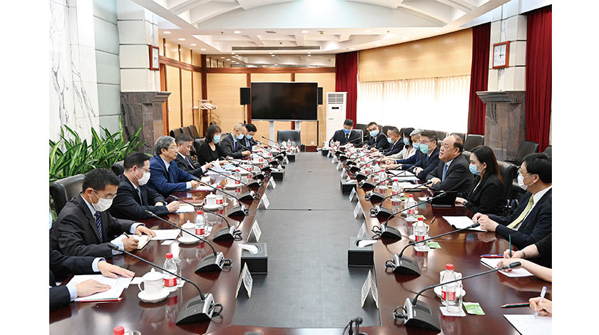 【特訊】正在北京的行政長官賀一誠昨日率領特區政府代表團一行,與中國人民銀行行長易綱,中國人民銀行副行長、國家外匯管理局局長潘功勝等會見,雙方就加強澳門與內地金融合作等議題交換意見。