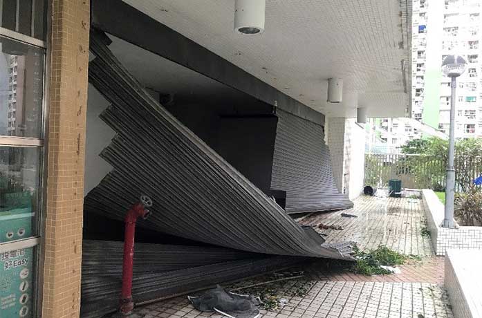【特訊】經歷颱風“海高斯”吹襲後,工聯離島辦事處與工聯石排灣職工服務站收到居民反映,安順大廈有天台欄杆脫落,險吹落街。巡區更發現業興大廈多間空置舖位鐵閘再次被吹爛,部份阻擋行人道,憂區內居民步行及小朋友走動玩樂時,不慎受傷,冀望政府部門能加快處理。(小標題)