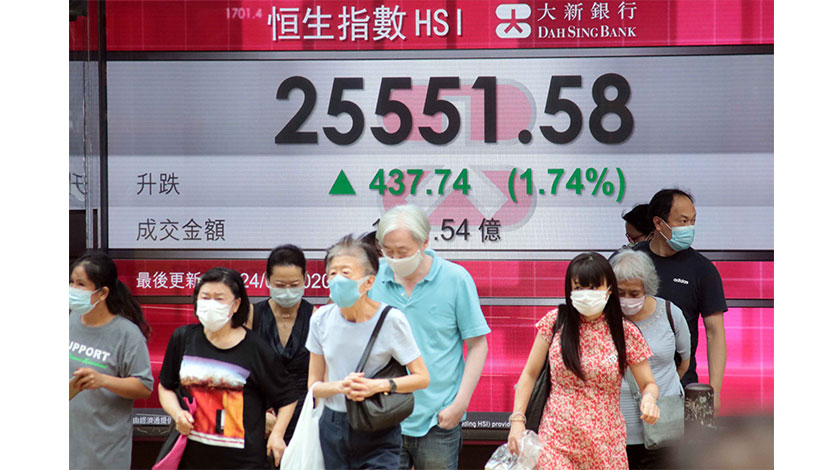 當日,恒生指數高開238點,其後反覆向上,雖有波幅,但走勢平穩,尾段則以全日最高位收市,升437.74點,升幅為1.74%,報25551點。成交金額為1401.54億港元,較前一個交易日增加18.65%。藍籌股大多向上,騰訊升5.79%,收報548港元,是升幅最大的藍籌,亦是貢獻恒指升幅最大的藍籌。銀娛跌2.25%,收報60.9港元,是跌幅最大的藍籌,亦是拖低恒指跌幅最大的藍籌。
