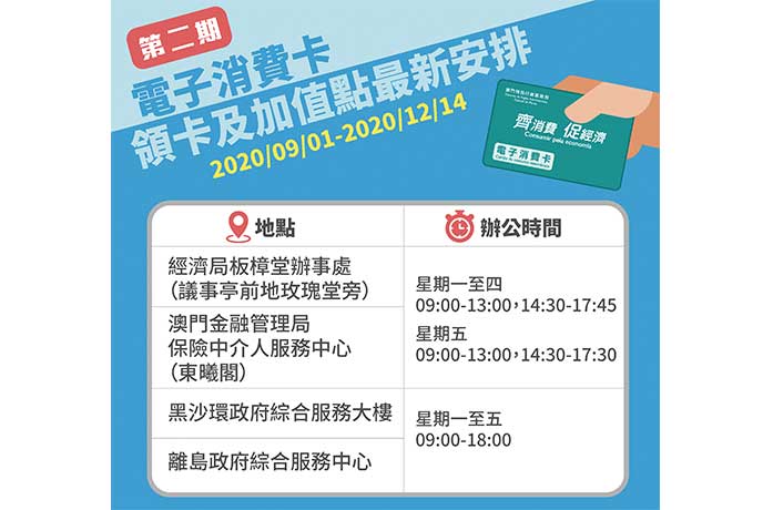 為方便居民加值及領卡,特區政府由7月27日起於全澳各區設置了合共190個加值服務點及6個領卡服務點。在廣大居民的配合以及多個銀行、社團機構和各部門的全力支持下,第二期消費補貼的發放工作得以順利推進,特區政府感謝各方的共同努力。