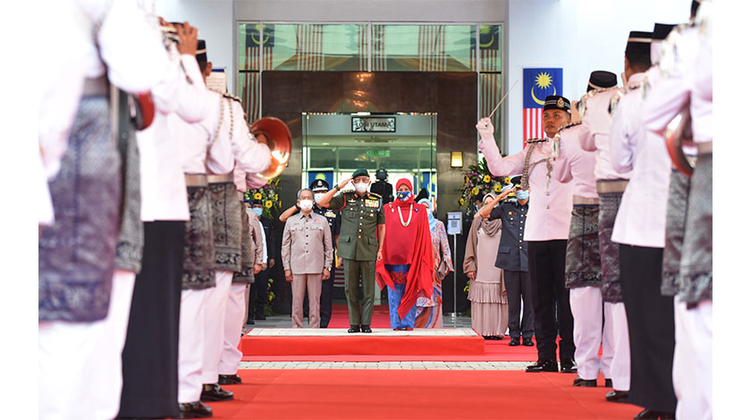 31日,在馬來西亞普特拉賈亞,馬來西亞最高元首阿卜杜拉(中)出席馬來西亞獨立63周年慶典活動。馬來西亞獨立63周年慶典活動8月31日在行政首都普特拉賈亞舉行,馬來西亞最高元首阿卜杜拉、總理穆希丁等政府官員出席。受新冠疫情影響,今年慶祝活動大幅縮減規模,政府在普特拉賈亞和吉隆玻等多個地點安排了一些慶祝活動,通過電視直播形式呈現。新華社發(馬來西亞新聞局供圖)