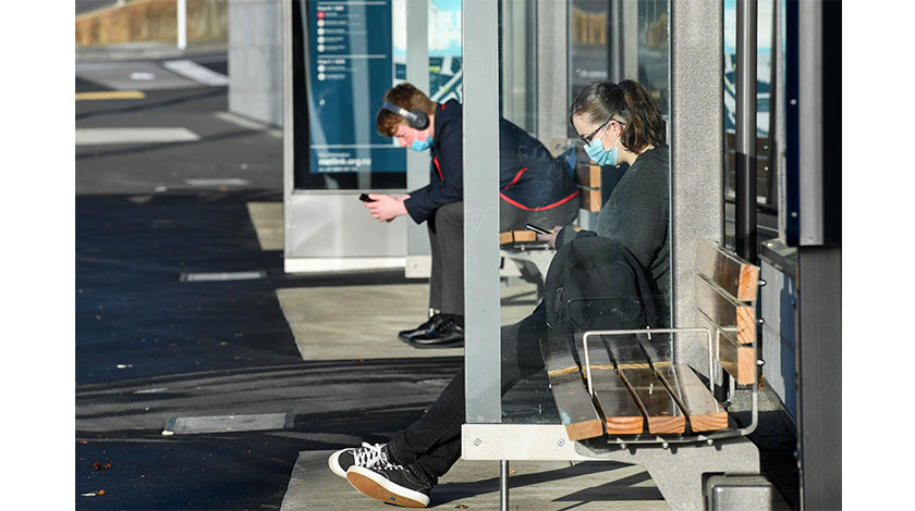 31日,新西蘭政府出臺的『口罩強制令』31日起正式生效。按照新規,12歲以上民眾在乘坐公共交通工具時必須戴口罩或使用其他織物遮掩口鼻,違者可能面臨最高1000新西蘭元(約合674美元)罰款。(新華社記者 郭磊 攝)