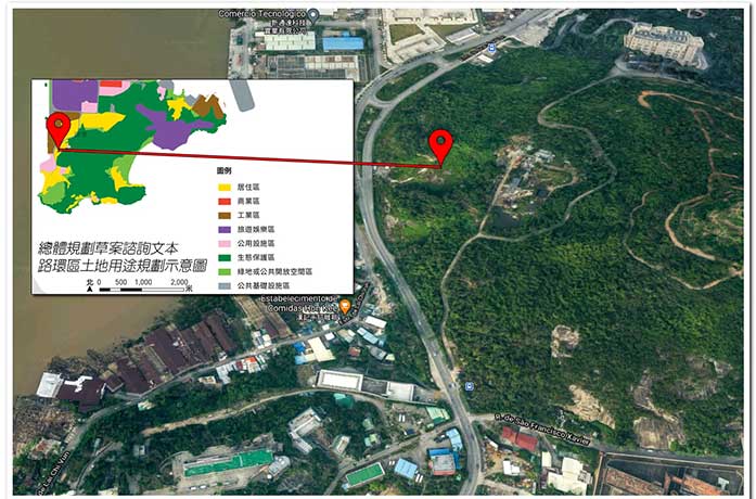 多年前遭到市民反對的、涉及大幅開掘路環疊石塘山的百米住宅建築項目,相關地段在近日發表的《澳門特別行政區城市總體規劃 (2020-2040)》草案諮詢文本中,被列為「居住區」。從總體規劃草案諮詢文本的圖示看來,被劃為「居住區」的相關地段,其面積與多年前建築項目的面積近乎一樣。
