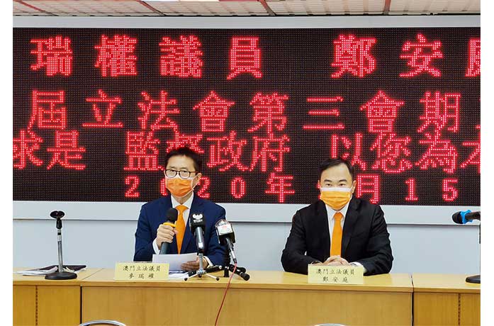 【特訊】議員麥瑞權、鄭安庭於9月15日假江門同鄉會會議室召開記者會,總結第六屆立法會第二會期的工作。據介紹,過去兩個會期他們合共提出174份書面質詢、18份口頭質詢,以及58份議程前發言,內容涵蓋住屋難、搭車難、睇病難、法律滯後、長者福利、青少年教育等議題;今個會期他們收到不少市民的求助個案,與去年相比增加近 500宗至 2721宗個案,主要涉及住屋、交通和搵工難等問題,已向政府反映。他們又指出,疫情令特區政府出現財政赤字,政府需要開源節流,議員將會繼續關注公帑的運用是否合理和監督政府的工作效率,希望達到市民的期望。他們促請特區政府把公共資本企業的營運更加透明和公開,讓社會知悉。
