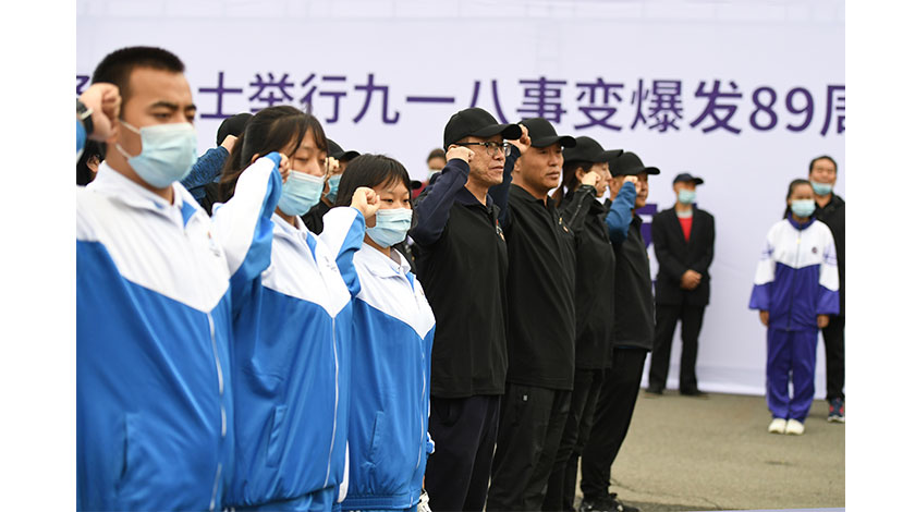9月18日,長春偽滿皇宮博物院內,數百名社會各界人士參加宣誓、簽名等活動,紀念『九一八』事變爆發89周年。(中新社記者 張瑤 攝)