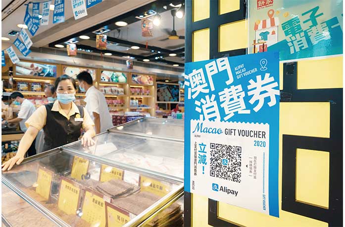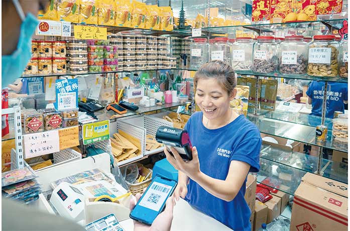 另一邊廂,在創立於1935年的咀香園工作了6年的店員吳小姐說:「澳門商家還是最喜歡藍色消費券,因為支付寶最先來澳門發券的嘛!」她說,今年受疫情影響,全澳門的手信店不少關了門,還堅守著的老字號,最大的變化就是用手機支付增多了。一來不用現金更安全,二來有優惠券折扣更吸引顧客。「開關前本地街坊鄰居是光顧主力,開關後大灣區一家親來得多了,我們都會主動推薦他們用手機上的消費券。現在全國遊客都可以來澳門了,非常期待國慶黃金周的銷量漲上去!」