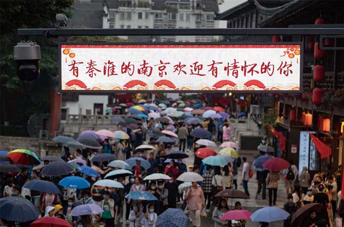 10月4日,遊客們冒雨在南京夫子廟景區遊覽。當日,中國文化和旅遊部發佈信息,經中國旅遊研究院(文化和旅遊部數據中心)綜合測算,10月1—4日,全國共接待國內遊客4.25億人次,實現旅遊收入3120.2億元人民幣。中新社記者 泱波 攝
