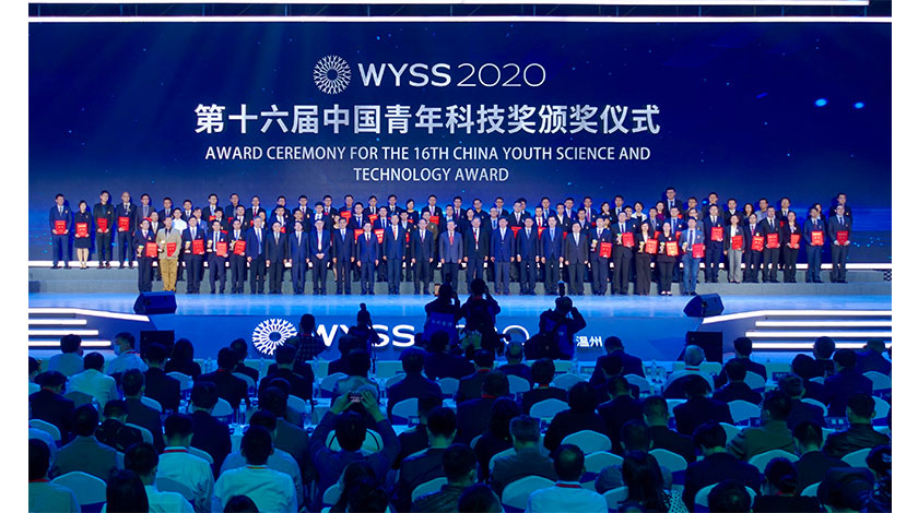 18日,第十六屆中國青年科技獎頒獎儀式在2020世界青年科學家峰會開幕式上舉行。當日,2020世界青年科學家峰會在浙江溫州開幕,共有來自125個國家、地區和國際組織的近800名科學家、企業家、藝術家、青年科技人才代表出席開幕式。(中新社記者 錢晨菲 攝)