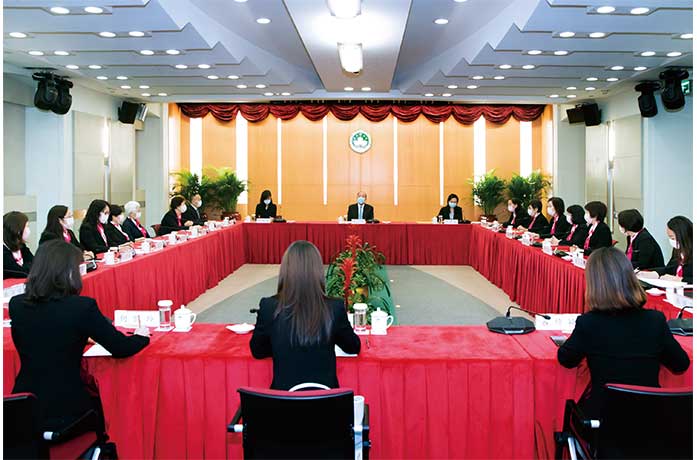 【特訊】行政長官賀一誠昨日在政府總部會見澳門婦女聯合總會副會長容永恩等領導層一行,就特區政府制訂2021年財政年度施政報告聽取意見及建議。