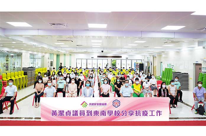 【特訊】為強化學生防疫知識,以及支持教育暨青年局提出的抗疫專題及感恩教育活動,東南學校邀請醫護專業的立法會議員、澳門婦女聯合總會副理事長、共建好家園協會理事長黃潔貞擔任主講嘉賓,為全體師生介紹新型冠狀病毒肺炎的防疫知識以及澳門第一綫抗疫人員的感人故事。主題活動前,黃潔貞議員參加了學校的每週一的升旗儀式。
