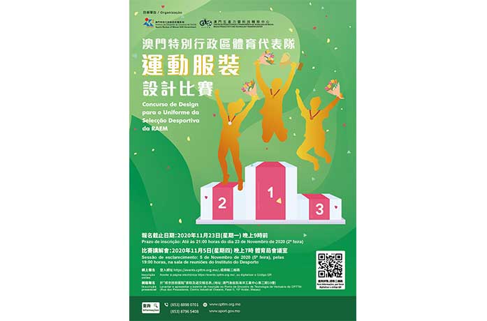 【特訊】由體育局與澳門生產力暨科技轉移中心合辦“澳門特別行政區體育代表隊運動服裝設計比賽”,由本年10月29日起接受報名,優勝之作品將有機會成為澳門特別行政區體育代表隊之運動服裝款式。