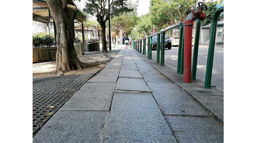 黃煥生指,塔石廣場是本澳市民重要的悠閒區,鄰近有多間學校、衛生中心和圖書館等設施,每天都有不少市民途徑此處,但有街坊反映指,塔石廣場近士多鳥拜斯大馬路的行人道由於缺乏維護和樹根生長等因素影響,導致路面石磚起伏不平,部分高低落差達一、兩釐米,早前就有街坊因路面不平而被石磚絆倒。
