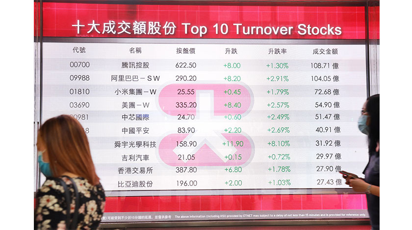 此外,市場憧憬中美貿易關係緩和,晶片股亦錄得升幅,中芯國際收報24.7港元,升2.49%;華虹半導體收報34.85港元,升2.8%。