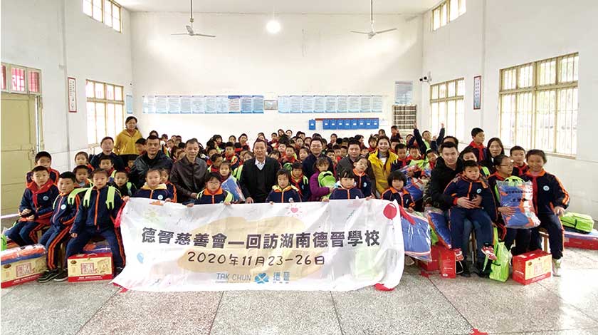 代表團回訪該會捐建的三所學校,分別位於湖南省株洲市淥口區古嶽峰鎮向陽村德晉第七小學、湖南省株洲市淥口區龍船鎮花石村德晉第八小學以及湖南省株洲市淥口區龍潭鎮磚橋鄉德晉第九中學,為學校及學童添置包括學生校服、老師制服、帽子、圍巾、手套、文具用品、啟智玩具、體育用品和愛心食品等,亦特意為當月的壽星帶來生日蛋糕及禮物,共計使用近三十萬元人民幣。其校學生亦即場展示詩詞功夫學習成果。此外,該會更為一位去年參加《濠江情‧中國心》慶祝澳門回歸祖國二十周年文藝晚會表演的同學頒發榮譽證書。