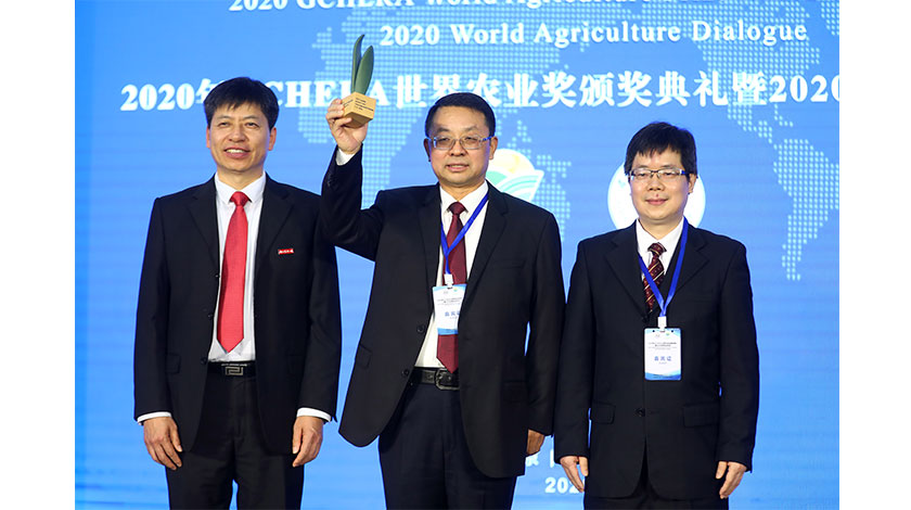 1日,2020年GCHERA世界農業獎在南京農業大學揭曉,中國工程院院士、中國農業大學張福鎖教授和美國加利福尼亞大學戴維斯分校帕梅拉•羅納德教授憑藉多年來在農業與生命科學領域教學科研工作中取得的突出成就獲獎,這也是中國科學家首次摘得該獎項。據悉,GCHERA世界農業獎是2012年由南京農業大學向全球農業與生命科學高等教育協會聯盟(GCHERA)發起倡議並設立的國際性獎項,旨在鼓勵在高等院校農業與生命科學領域教育、研究與創新方面做出傑出貢獻的個人,涉及農業、林業、自然資源、食品、生物基礎產品、生物質能源、農村發展和自然環境等領域。圖為中國農業農村部國際合作司參讚吳昌學(右)、南京農業大學黨委書記陳利根(左)為2020年GCHERA世界農業獎獲獎者張福鎖院士(中)頒獎。(中新社記者 泱波 攝)
